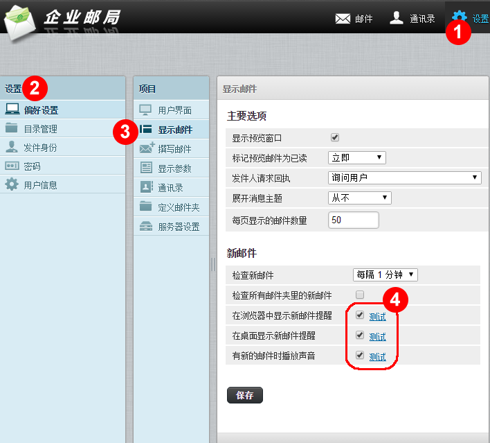 企業云郵如何在桌面顯示新郵件提醒和聲音提醒