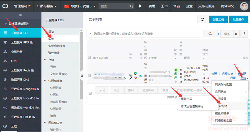 進入管理控制臺>>云服務器 ECS>>實例>>會看到你已經購買了的云服務器。