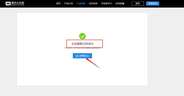 點擊注冊后就提示,企業郵箱注冊成功,如下圖: