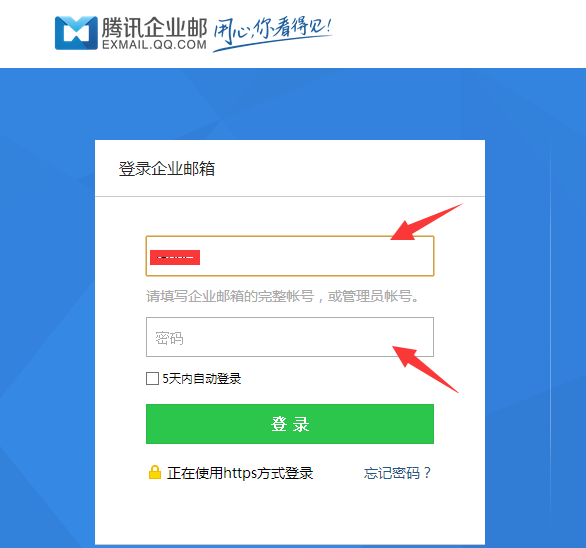 打開企業郵箱首頁:https://exmail.qq.com/。點擊登錄。如下圖: