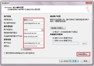 2.2在“添加新賬戶”窗口中,輸入您個人的“用戶信息”、“登錄信息”,而“服務(wù)器信息”則按照頁面的提示進(jìn)行填寫。