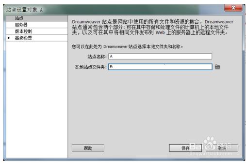 首先為更好地管理網頁,需要將網頁用站點進行統一管理,因此要先新建站點:點擊 站點-新建站點