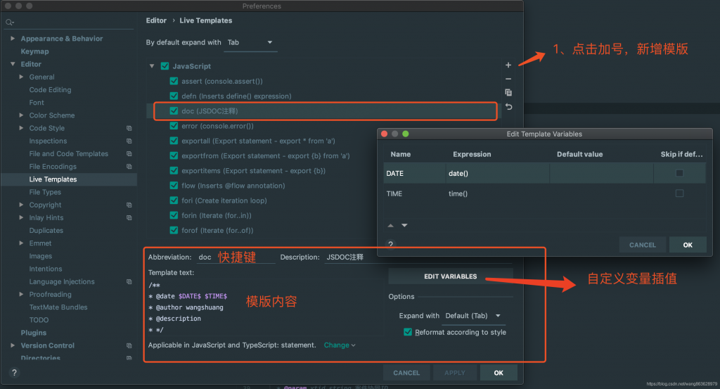 打開webstorm ,按照 file->setting->editor->live template 找到快捷鍵模板設置頁面