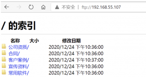 6.測試訪問ftp服務器,在“計算機”里輸入“ftp://192.168..55.107”由于有勾選匿名,訪問的時候無需輸入用戶名密碼,當然也可以在瀏覽器里面訪問。然后可以測試讀寫。