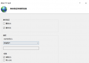 5.身份驗證和授權勾選“基本“和”匿名“,匿名即采用用戶名anonymous。允許所有用戶訪問。到這步一個ftp服務器就搭好了。