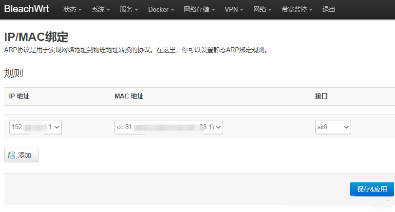 OpenWrt 設置路徑:網絡-IP/MAC綁定