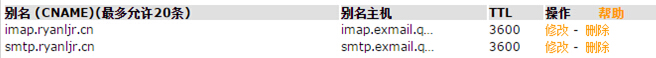 Cname值:?smtp.域名??? 別名主機:smtp.exmail.qq.com(海外用戶別名主機請設置為:hwsmtp.exmail.qq.com?)