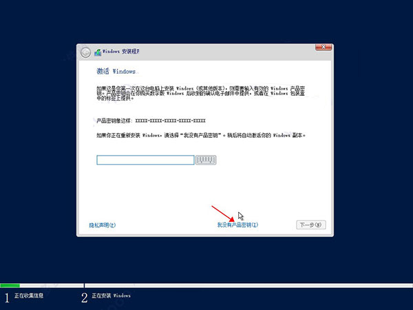 3、秘鑰可以先選擇“沒有產品秘鑰”選項,如下圖所示: