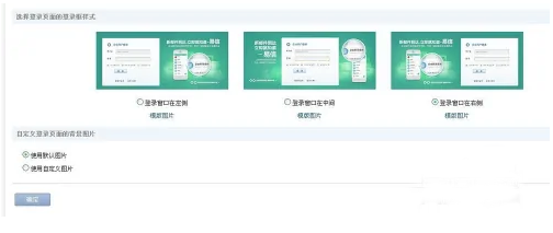 第四、在這里有三種設(shè)置的格式,讓我們可以自由選擇,還可以進(jìn)行自定義,設(shè)置自己個(gè)性的登錄界面,這里也就是設(shè)置企業(yè)風(fēng)格的登錄界面。如下圖所示:
