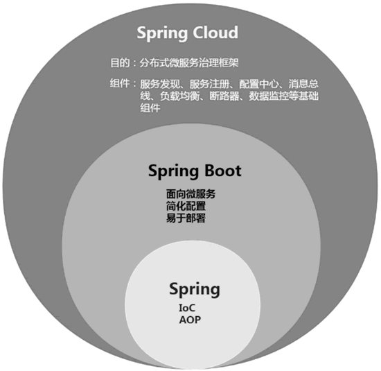圖 3 Spring、Spring Boot和Spring Cloud的關系