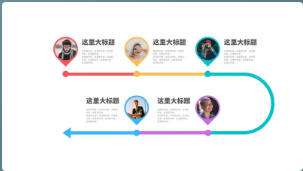 首先要推薦的是適合PPT演示的時間軸模板,分為直線和曲線兩種時間軸樣式,每個時間節點的附近設置了圓形頭像和文字模塊。如: