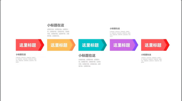 如果你想要更加具有設計感的時間軸樣式,還可以使用下方的箭頭型時間軸模板,將每個時間節點的內容書寫在箭頭下方即可。